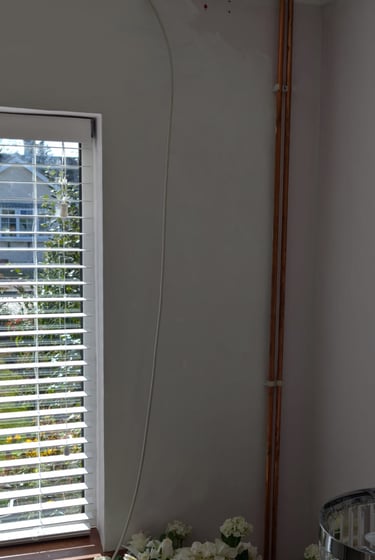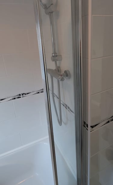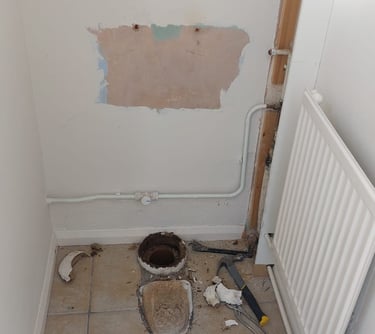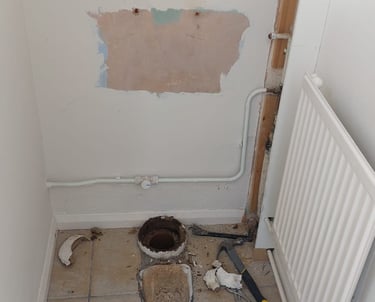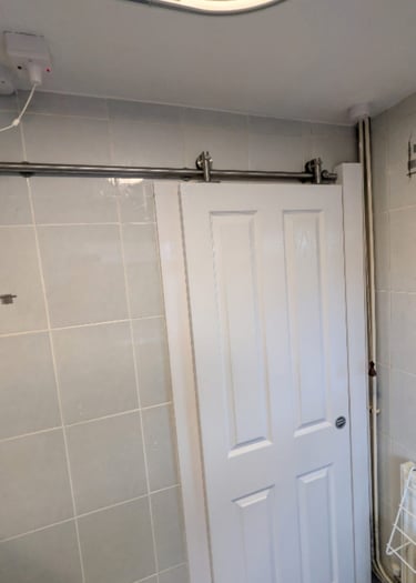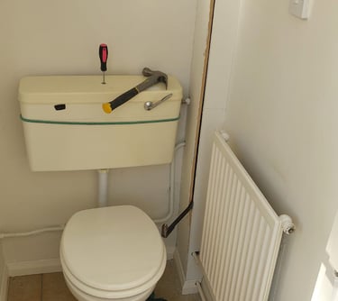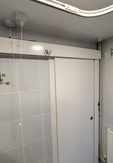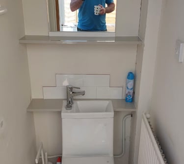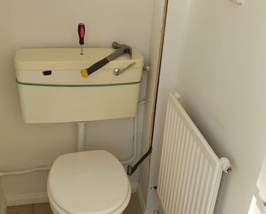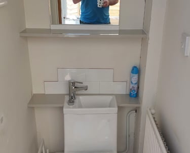 Boxing in pipe work in bathroom, before and after.