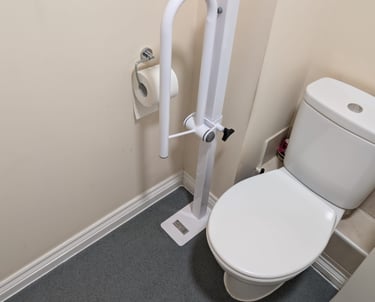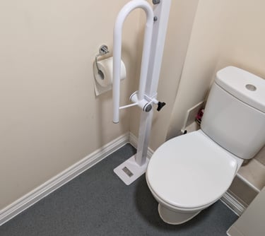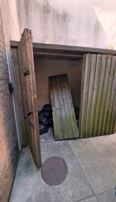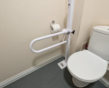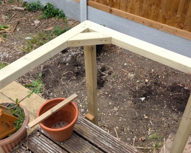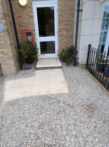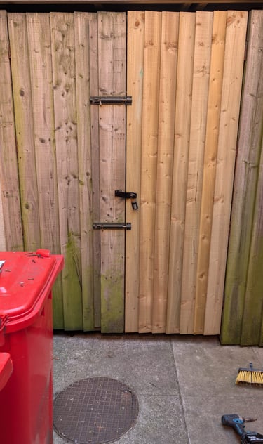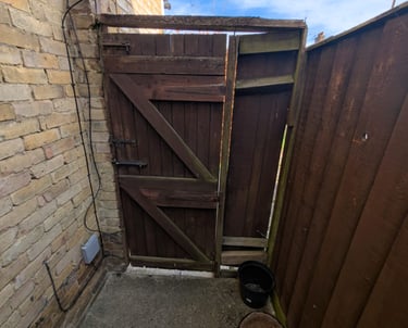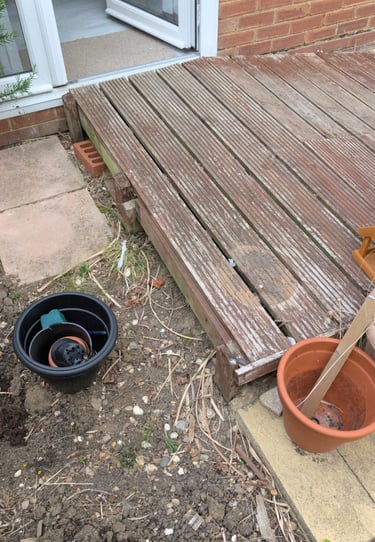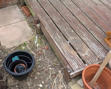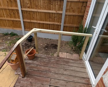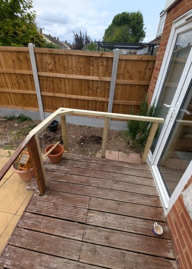 Hand rail added to decking ramp making it safer for use.