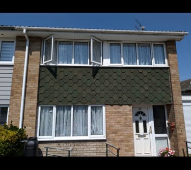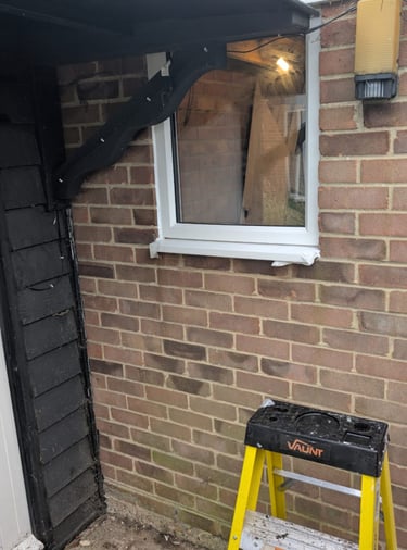 Wooden window replaced for pvc window and rotten porch roof replaced for new.